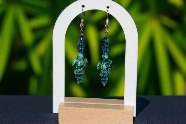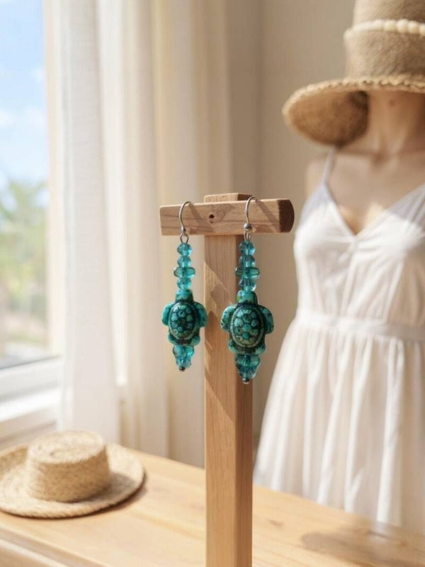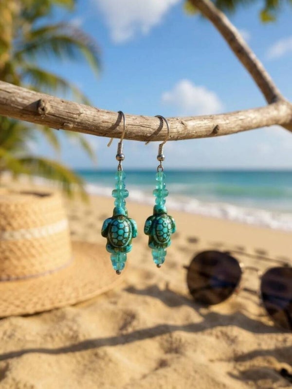 - Boucles d'oreilles pendantes avec motifs de tortues en pierre turquoise