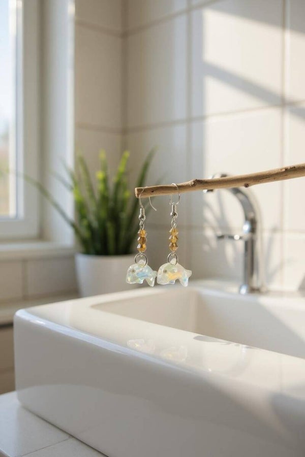 Boucles d'oreilles pendantes "Dauphins", composées de perles en cristal. Acier inoxydable
