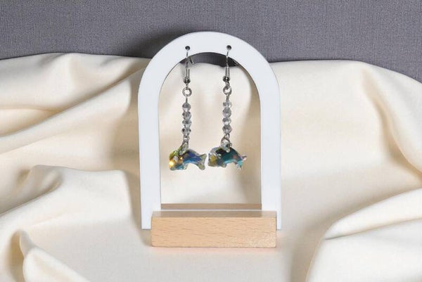 Boucles d'oreilles pendantes "Dauphins", composées de perles en cristal. Acier inoxydable
