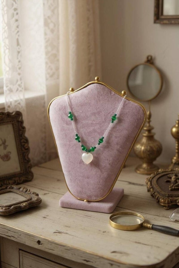 Succombez au charme de notre collier "Coeur en Opalite", mesurant 43 cm + extension pour un ajustement parfait. Confectionné avec soin, il associe des perles de rocaille, œil de chat, cristaux, et un pendentif en opalite en forme de cœur. La monture en acier inoxydable garantit durabilité et élégance. Idéal pour ajouter une touche douce et raffinée à votre style.