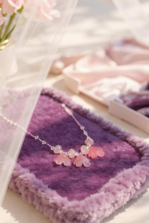 Collier "Pétales" 47 cm + extension - Élégance en perles de verre et cristal