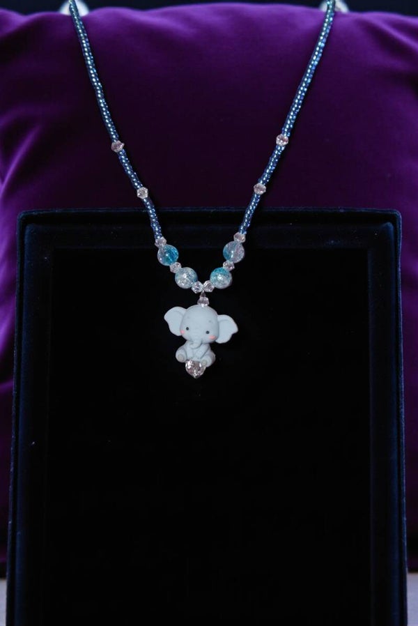 Un collier élégant et original, orné de perles en cristal, verre et rocaille, associé à une jolie breloque éléphant. Parfait pour ajouter une touche sophistiquée à votre look !