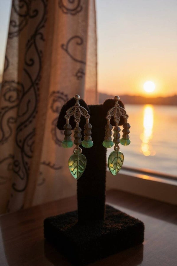 - Boucles d'oreilles feuilles – perles cristal et verre